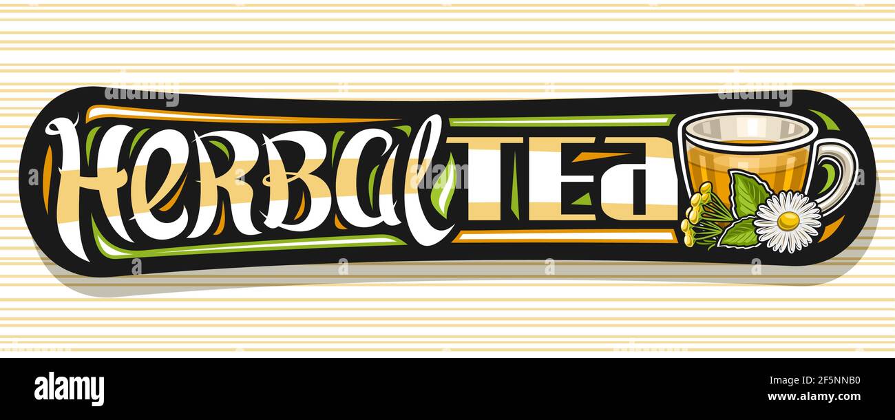 Banner vectorial para té herbario, etiqueta decorativa con ilustración de taza de té