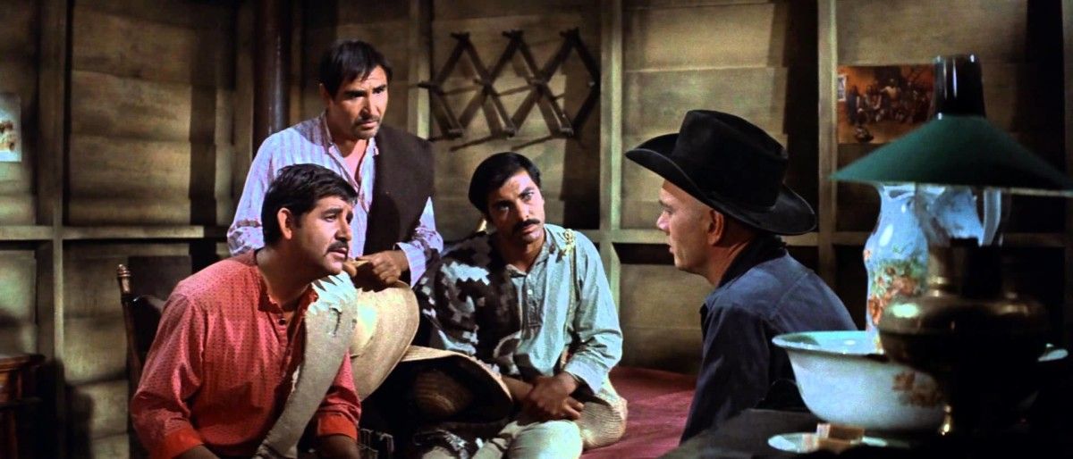 SETE HOMENS E UM DESTINO - 1960. Em um vilarejo mexicano, os habitantes sofrem constantes ataques de um bando de pistoleiros liderados pelo temido Calvera (Eli Wallach). Cansados de serem saqueados, alguns moradores locais que não têm armas e muito menos temperamento violento viajam até a fronteira, onde encontram Chris (Yul Brynner) e Vin.