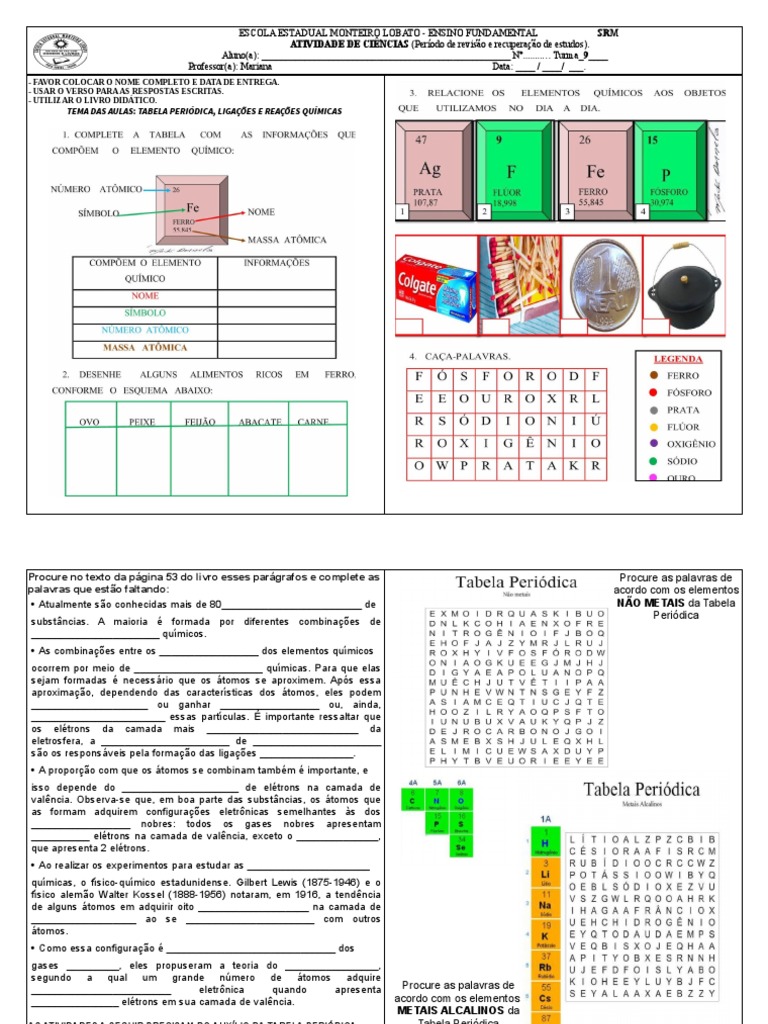 Atividade Sobre Tabela Periodica 9 Ano EDUBRAINAZ