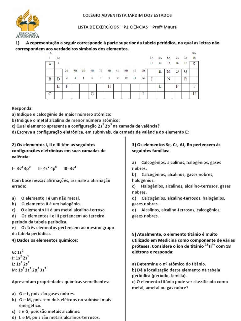 Exercicios Tabela Periodica 9 Ano EDULEARN