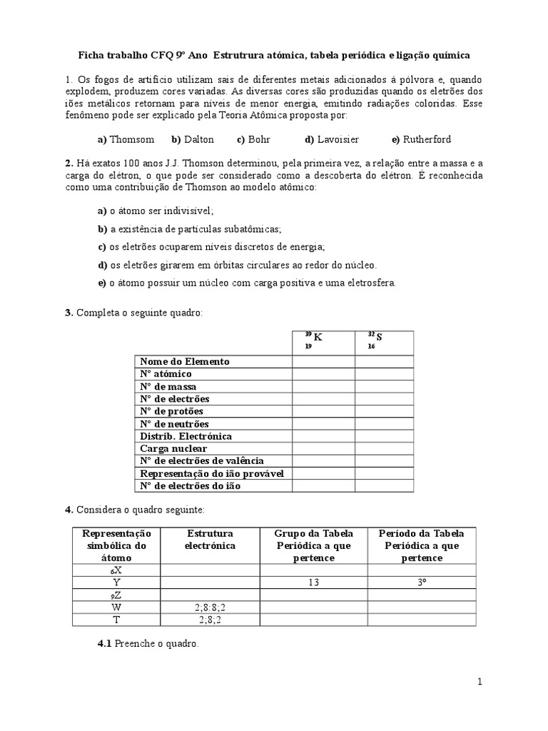 Exercicios Sobre Estrutura Atomica 9 Ano Várias Estruturas