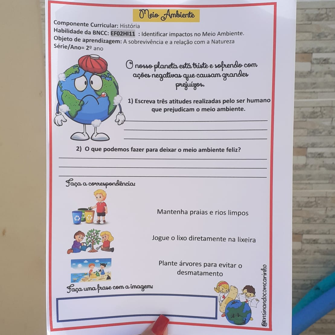 Atividade para trabalhar os impactos no meio ambiente nas turmas de alfabetização