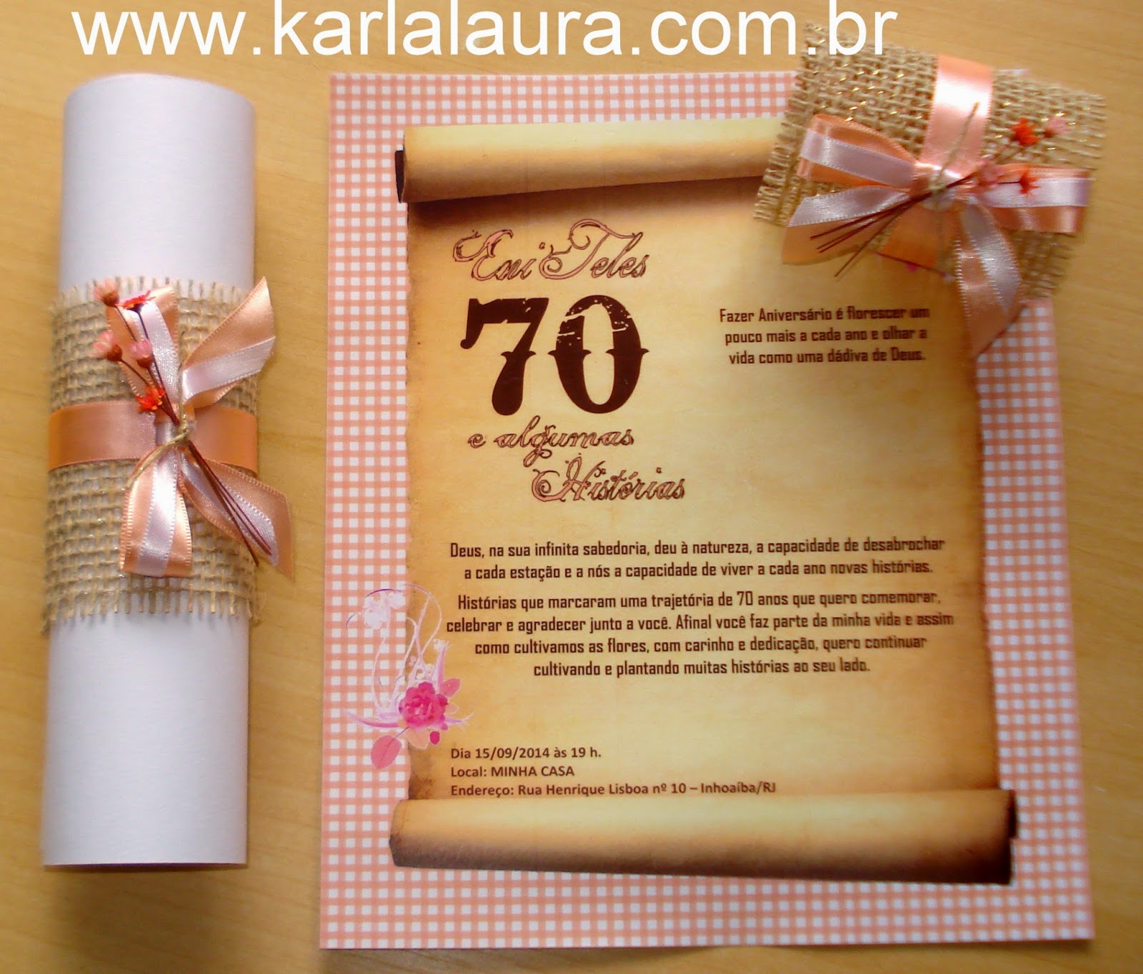 Convite de aniversário rústico 70 anos Eni Lopes Karla Laura Convites, Lembranças e