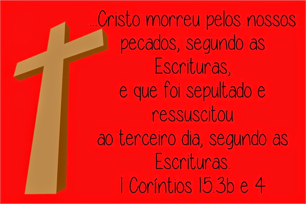 1 Coríntios 15:3-4. Porque primeiramente vos entreguei o que também recebi: que Cristo morreu por nossos pecados, segundo as Escrituras, e que foi sepultado, e que ressuscitou ao terceiro dia, segundo as Escrituras. Pois o que primeiramente lhes transmiti foi o que recebi: que Cristo morreu pelos nossos pecados, segundo as Escrituras, foi.