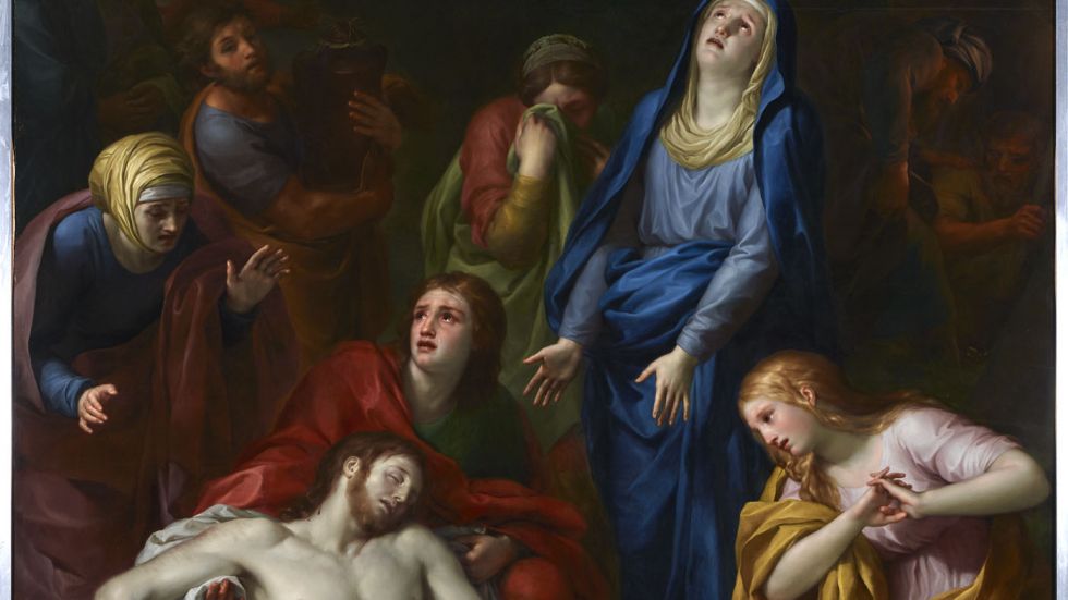 In this dramatic composition, the figures are packed around Christ to form a compact group. Behind, rises the figure of Joseph of Arimathea, holding up the.