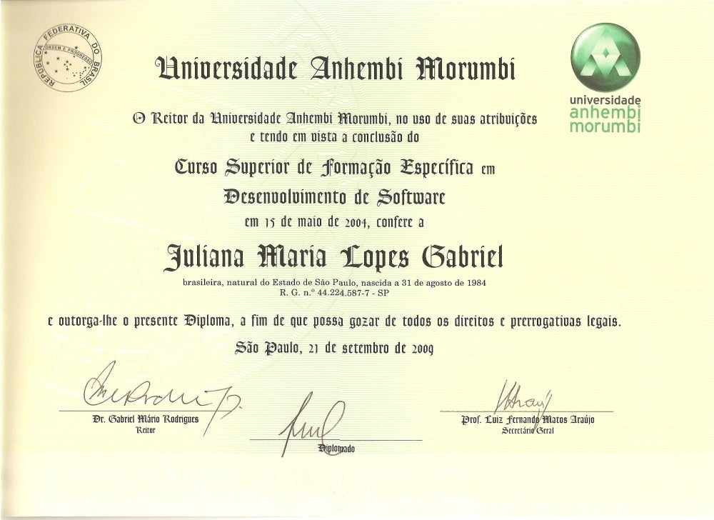 Certificado Graduação Anhembi Morumbi Juliana Maria Lopes