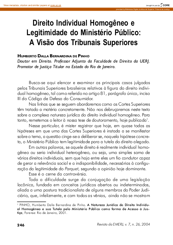 (PDF) Direito individual homogêneo e legitimidade do Ministério Público a visão dos tribunais
