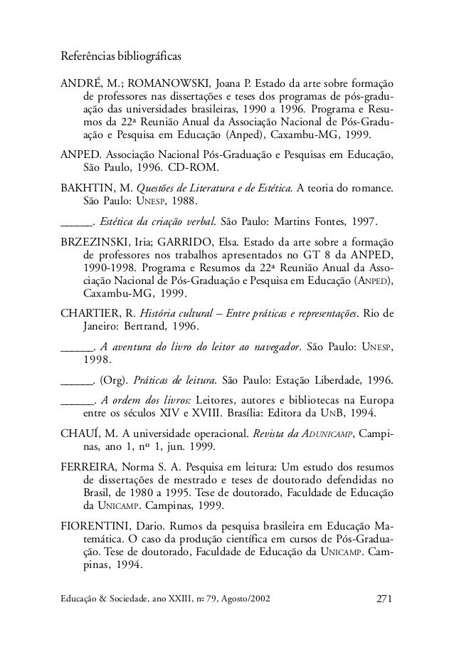 Estado da arte sobre formação de professores nas dissertações e teses dos programas de pós-graduação das universidades brasileiras, 1990 a 1996 (André e Romanowski) e Estado da arte sobre a formação de professores nos trabalhos apresentados no GT 8 da Anped, 1990-1998 (Brzezinski e Garrido, 1999). O que move esses pesquisadores?