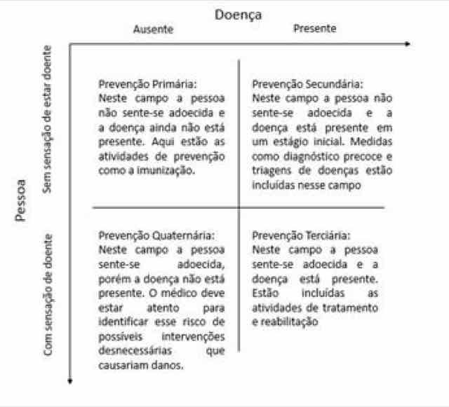 Aqui, argumentamos sobre a importância da prevenção quaternária na prevenção primária específica e secundária. O grande desenvolvimento recente da medicina preventiva, da biomedicalização dos riscos e seu tratamento como se fossem doenças e a influência poderosa dos interesses comerciais das indústrias farmacêuticas sobre a.