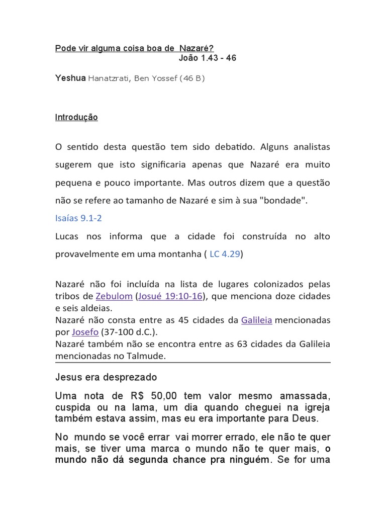De Nazaré Pode Sair Alguma Coisa Boa PDF Jesus Messias