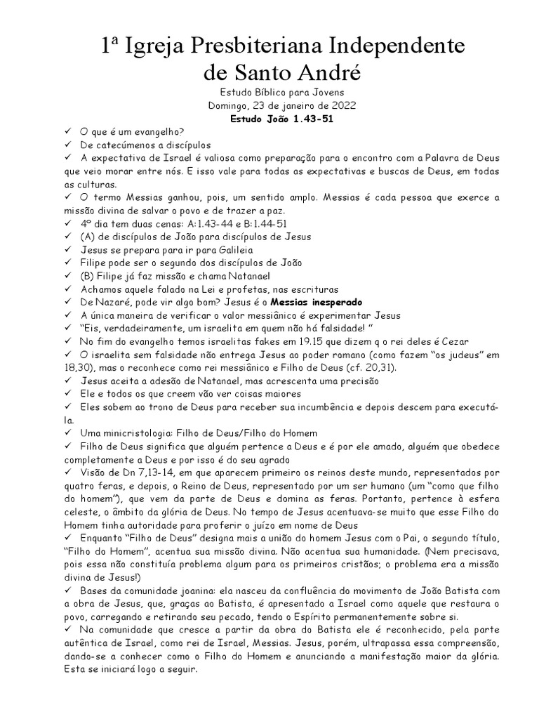 Natanael perguntou: ― Nazaré? Pode vir alguma coisa boa de lá? ― Venha e veja — disse Filipe. Ao ver Natanael se aproximando, Jesus disse: ― Aí está um verdadeiro israelita, em quem não há falsidade. Natanael perguntou: ― De onde me conheces? Jesus respondeu: ― Eu o vi quando você ainda estava debaixo da figueira, antes de.