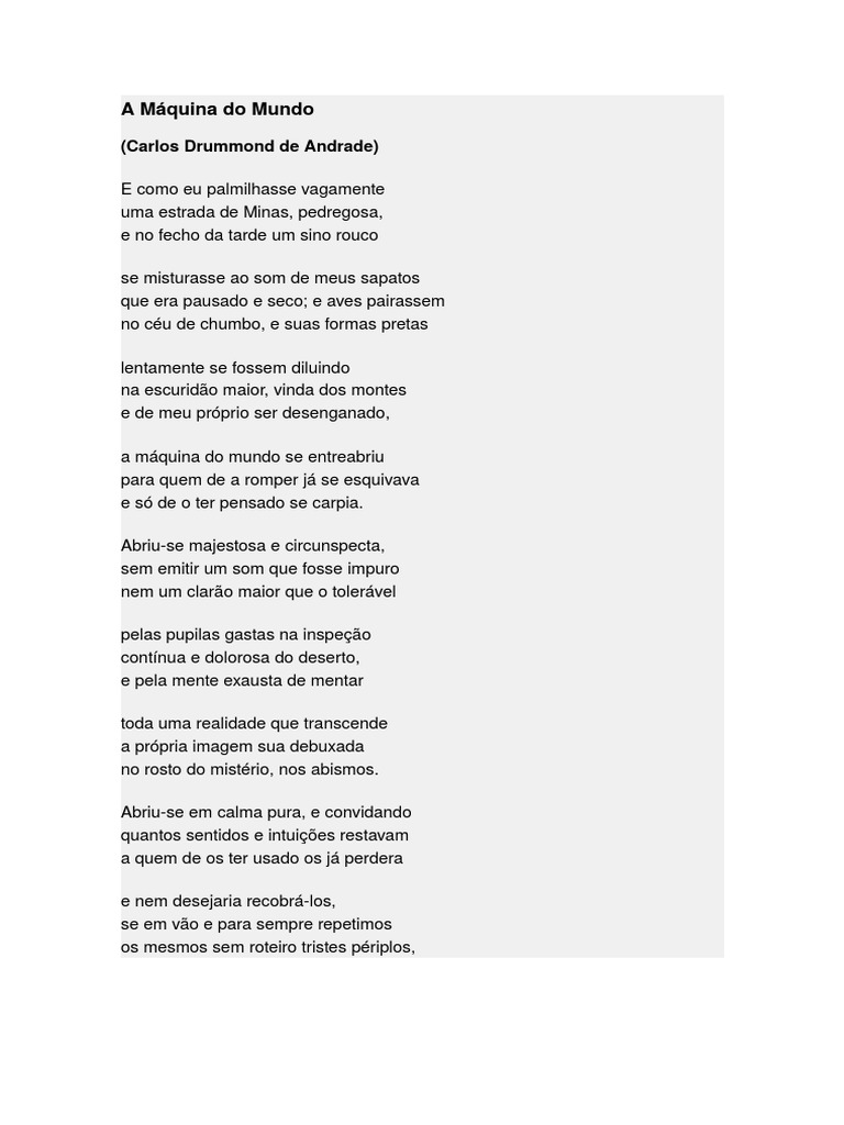 Poema A Máquina Do Mundo de Carlos Drummond de Andrade