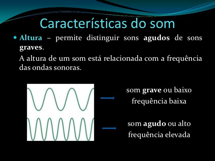 Essas qualidades estão relacionadas à sensação que o som produz no ouvido humano e são: altura, intensidade e timbre. Altura. Essa qualidade permite ao ser humano diferenciar e classificar os sons em graves e agudos. Isso é feito a partir da frequência do som. Assim, quanto maior for a frequência de uma onda sonora, mais agudo será o som.