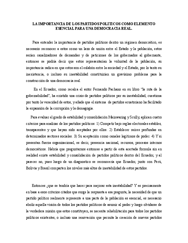 (DOC) LA IMPORTANCIA DE LOS PARTIDOS POLÍTICOS COMO ELEMENTO ESENCIAL PARA UNA DEMOCRACIA REAL