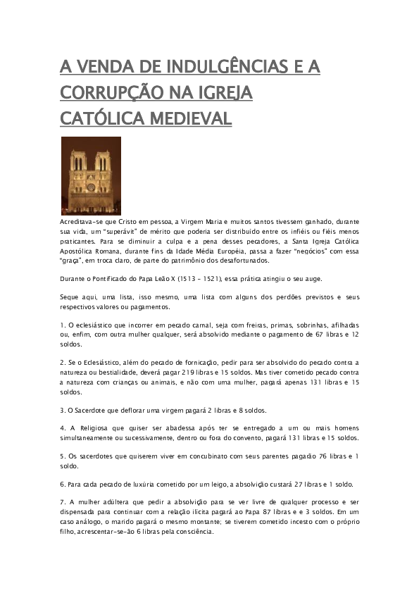 (DOC) A VENDA DE INDULGÊNCIAS E A CORRUPÇÃO NA IGREJA CATÓLICA Josiane Santos Academia.edu