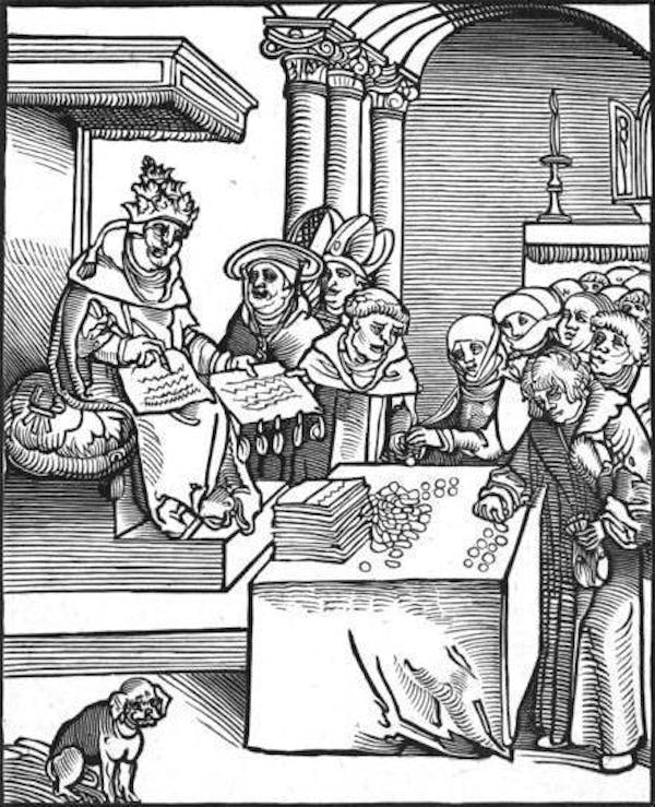 A venda das indulgências, ou seja, pagamento monetário pelo perdão espiritual dos pecados concedido pela Igreja Católica, foi um mecanismo criado para obter vantagens econômicas e políticas em meados da Idade Média. O Caso das Indulgências - o ''princípio'' da Reforma Protestante. Watch on.