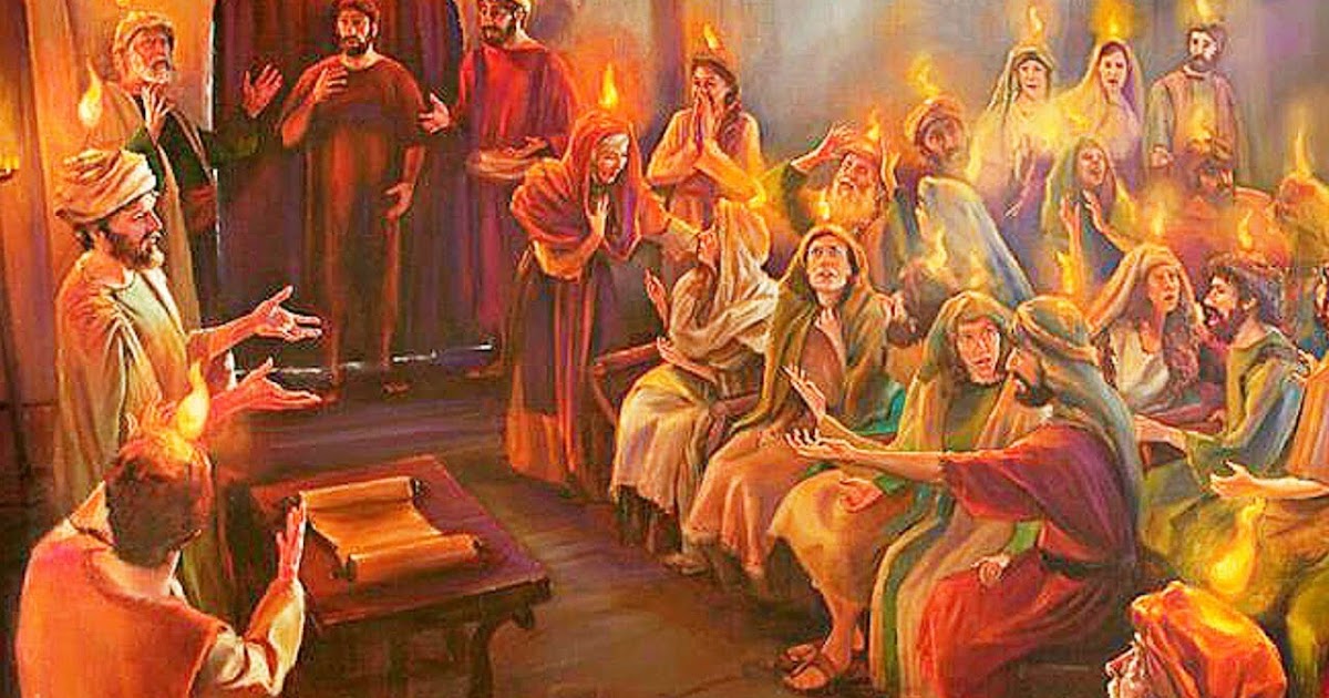 1 E, cumprindo-se o dia de Pentecostes, estavam todos concordemente no mesmo lugar; 2 E de repente veio do céu um som, como de um vento veemente e impetuoso, e encheu toda a casa em que estavam assentados. 3 E foram vistas por eles línguas repartidas, como que de fogo, as quais pousaram sobre cada um deles. 4 E todos foram cheios do Espírito.