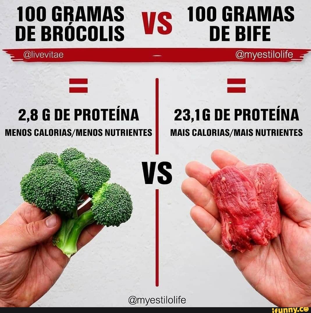 100 GRAMAS WS 100 GRAMAS DE BROCOLIS DE BIFE Olivevitae myestilolife MENOS CALORIAS/MENOS