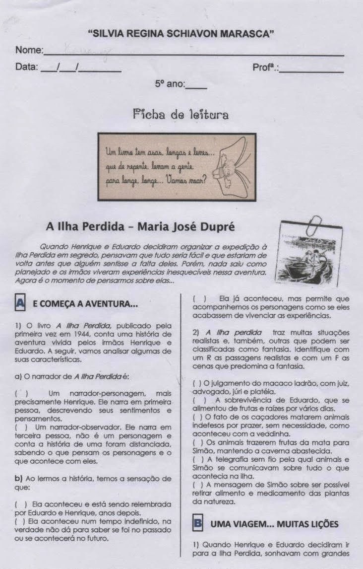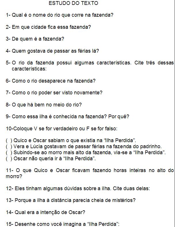 Perguntas Sobre O Livro A Ilha Perdida Com Gabarito EDUCA